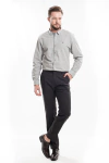 Bolso faca frontal e traseiro embutido com botão de massa tingido na cor da peça.